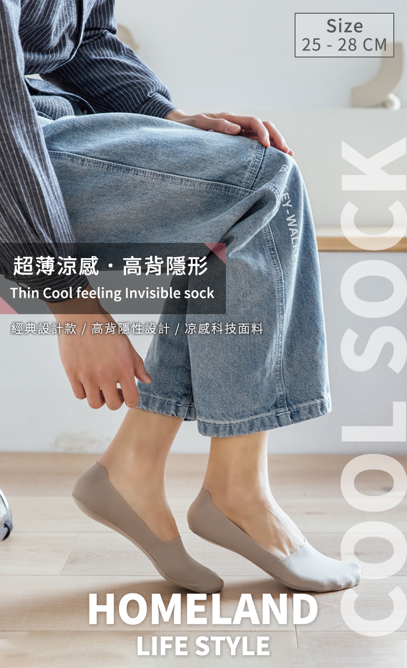 【HOMELAND】經典涼感高背隱形襪 25-28 cm