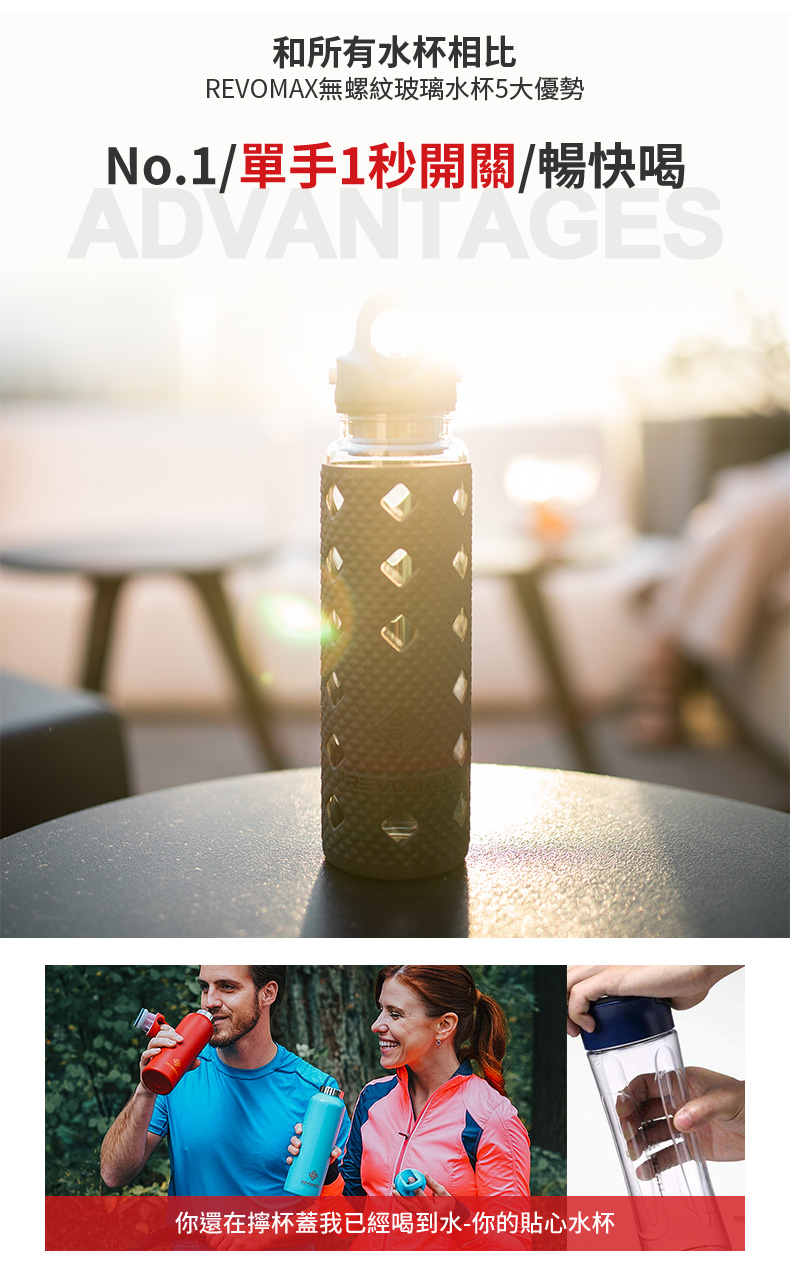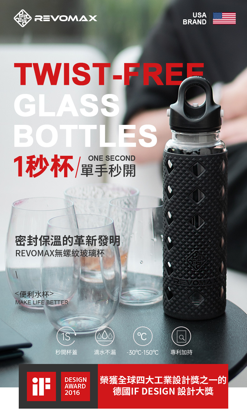【Revomax 美國】強化玻璃秒開瓶水果瓶 473ml