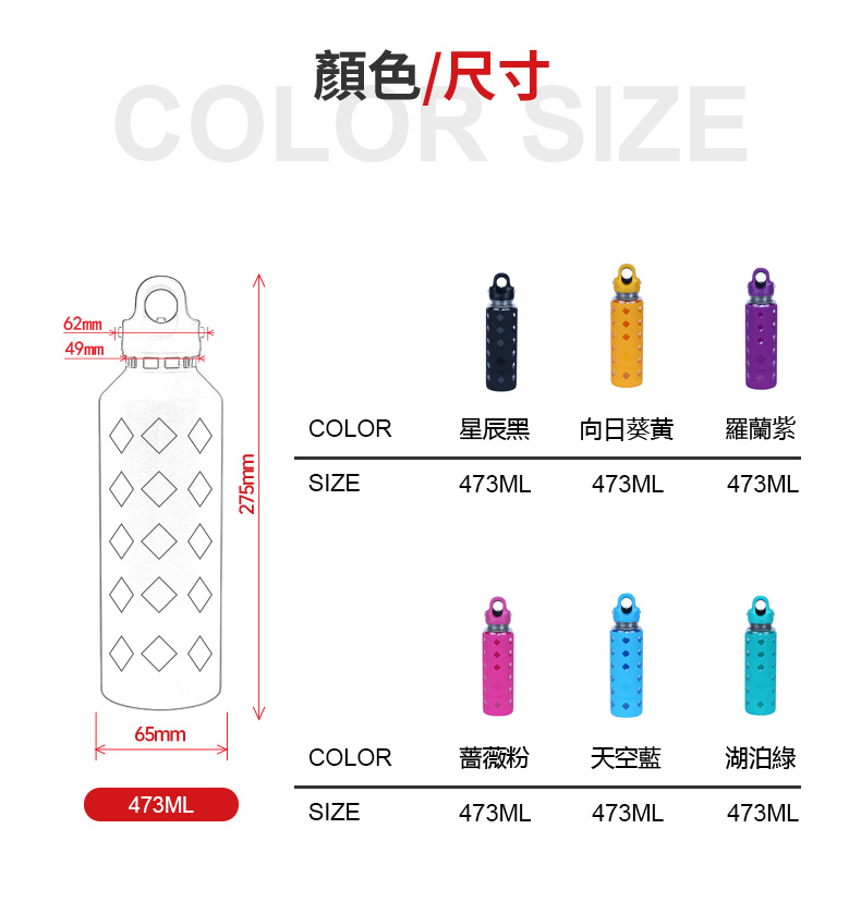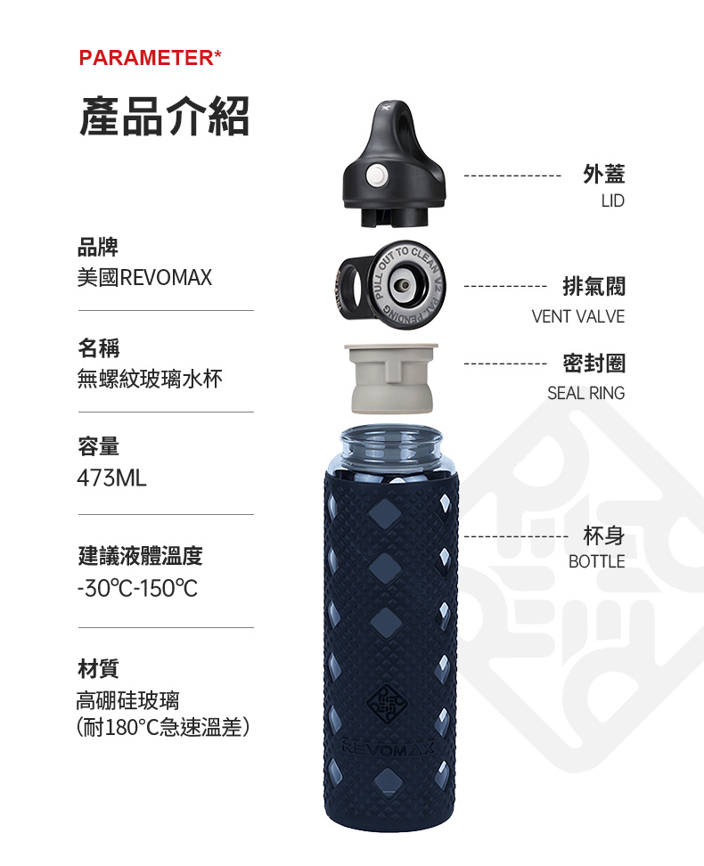 杯體材質:強化玻璃杯蓋材質:聚丙烯 PP(丙烯均聚物)杯蓋膠圈材質:矽膠 |