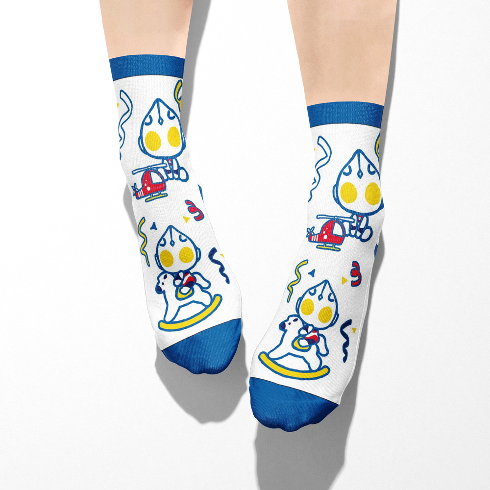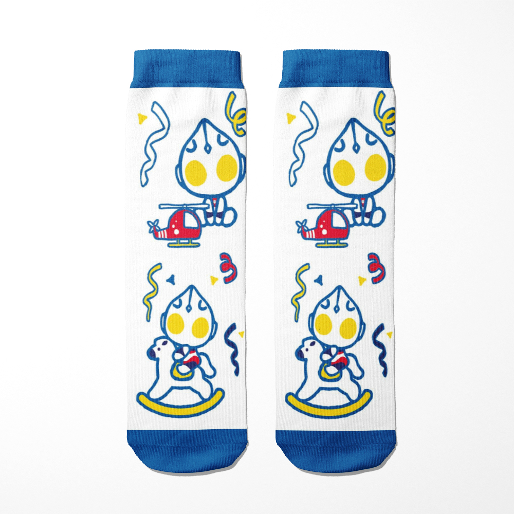 【超人力霸王 Ultraman】Q版直版童襪 馬戲團款 白色(藍邊) 16-18cm