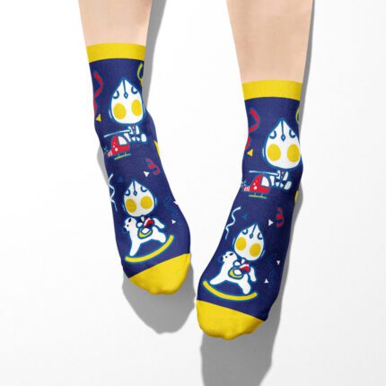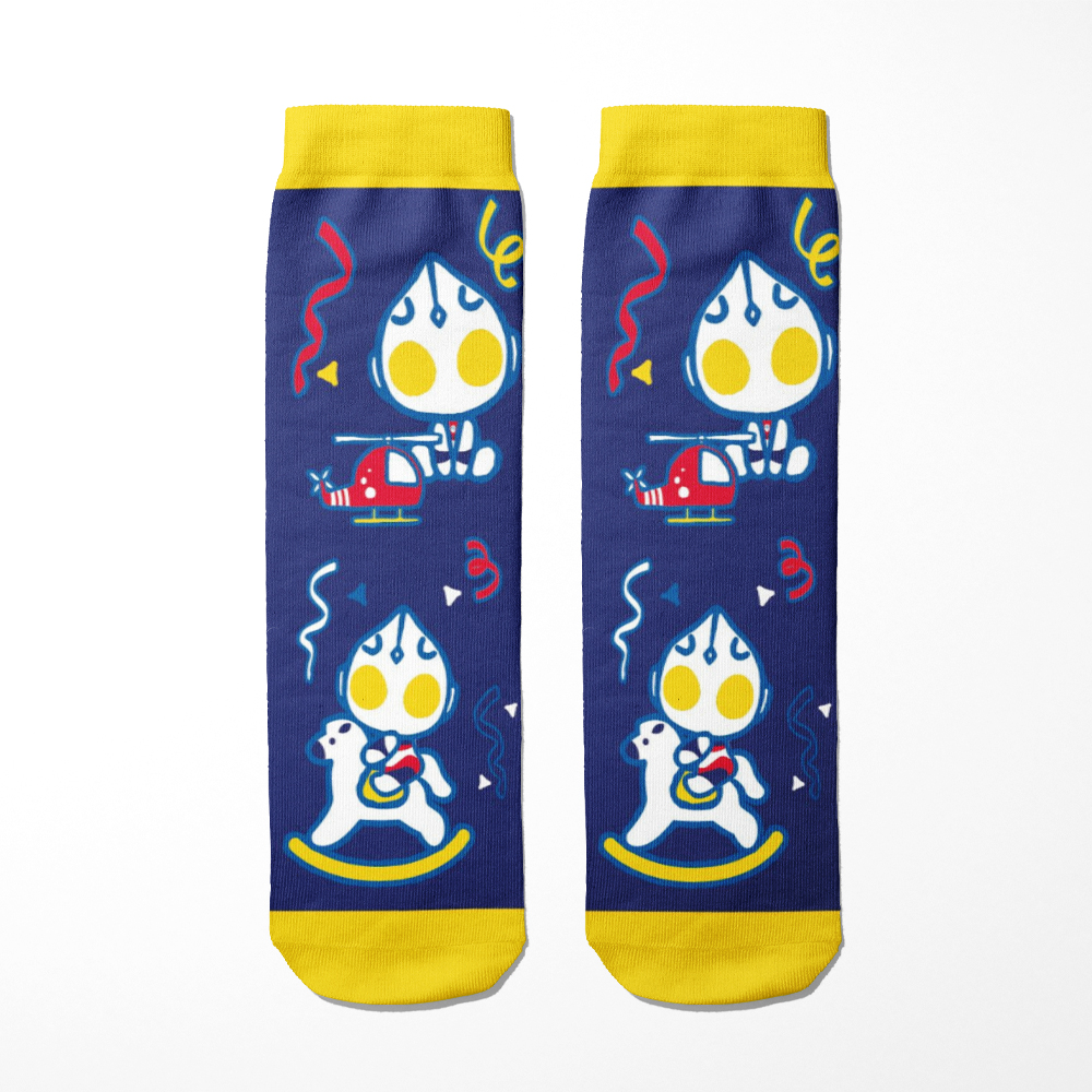 【超人力霸王 Ultraman】Q版直版童襪 馬戲團款 深藍色(黃邊) 16-18cm