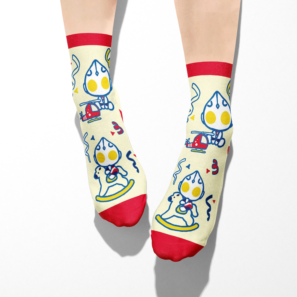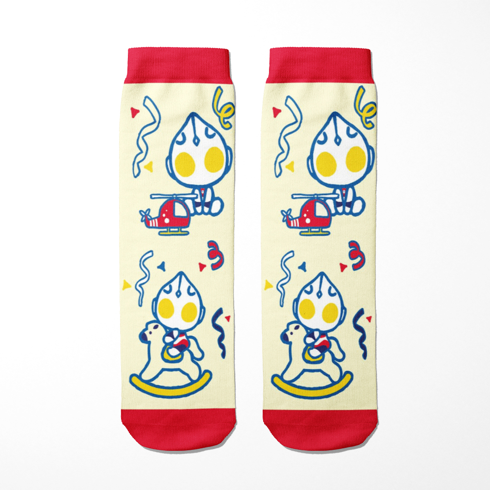 【超人力霸王 Ultraman】Q版直版童襪 馬戲團款 黃膚色(紅邊) 16-18cm