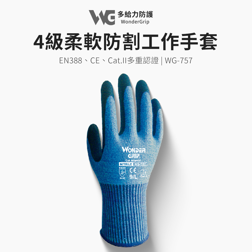 【WonderGrip 多給力】WG-757 CUT ARAMID 4級柔軟防割工作手套